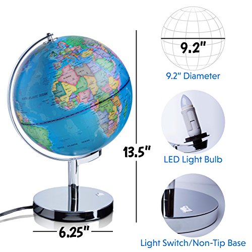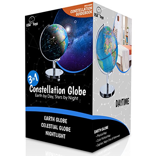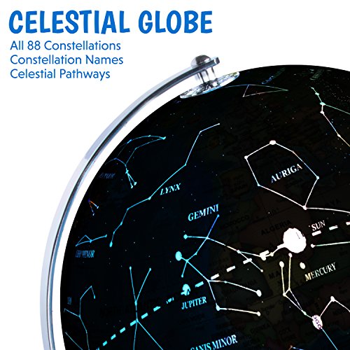 ENJOY DETAILED DAYTIME & NIGHTTIME FEATURES. This is a light up world globe for kids and adults! Includes up-to-date continents, countries and cities, navigational lines, constellation lines and names, ecliptics and planets.