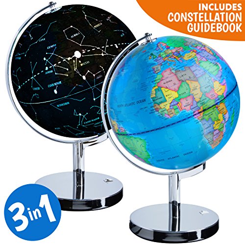 3-IN-1 ILLUMINATED WORLD GLOBE: This light up globe for kids is a globe of the world, constellation map and nightlight all in one