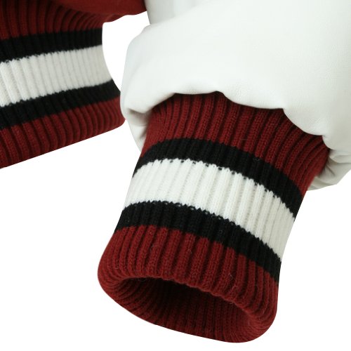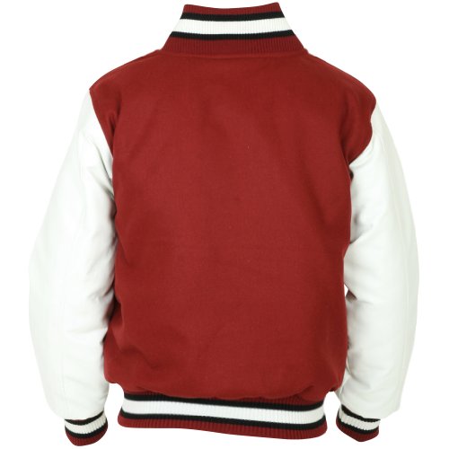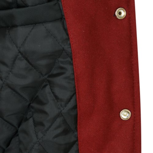 - Feature : Finest wool & rayon blend body and Fuax leather sleeve / Stretchy knit striped ribbing trims collar, cuffs, and hem / 2 slash pockets, 1 inside pocket and snap closure / Plain school baseball team letterman varsity jackets - no letterings / Please see the size information below in description
