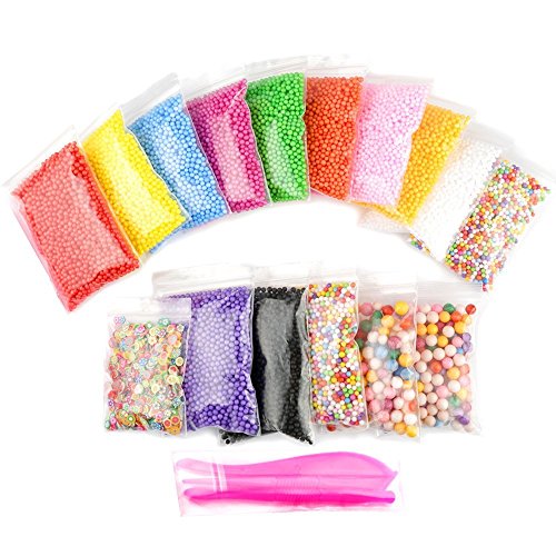 Styrofoam Foam Balls for Slime, Lasaoon 15-Pack Colorful Mini Foam beads with Slime Tools and Fruit Slice for Homemade Slime, Art DIY Craft
