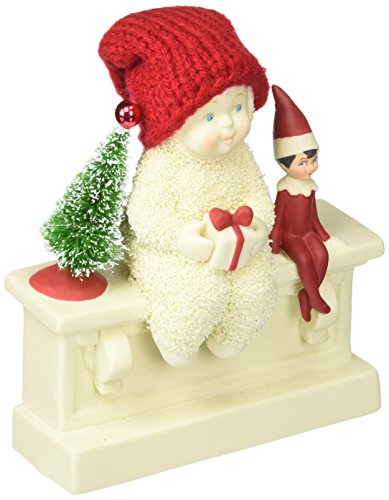 Looks like elf on the shelf drew snow baby's name this Christmas! they're perched atop a special mantle and are ready to exchange their gifts. Looks like snow baby's been extra-nice this year! designed exclusively by Kristi Jensen Pierro for Department 56.Feature
