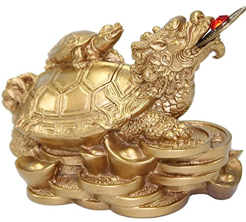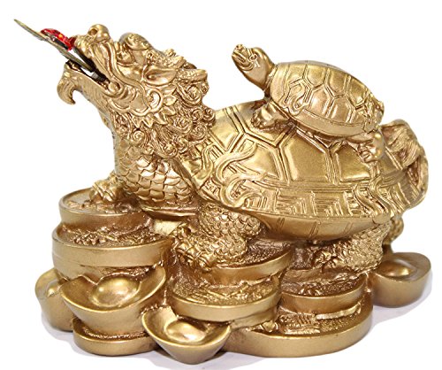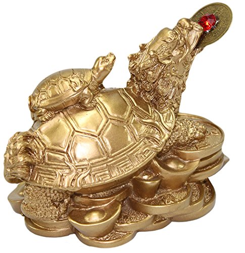 - Elegant Gold Dragon Turtle statues. It has a baby turtle on it, standing on a bed of coins/ ingots.