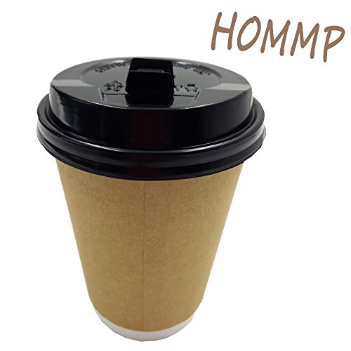 HOMMP DISPOSABLE HOT COFFEE PAPER CUPS WITH LIDS AND CUP SLEEVES, 100COUNT/BOX