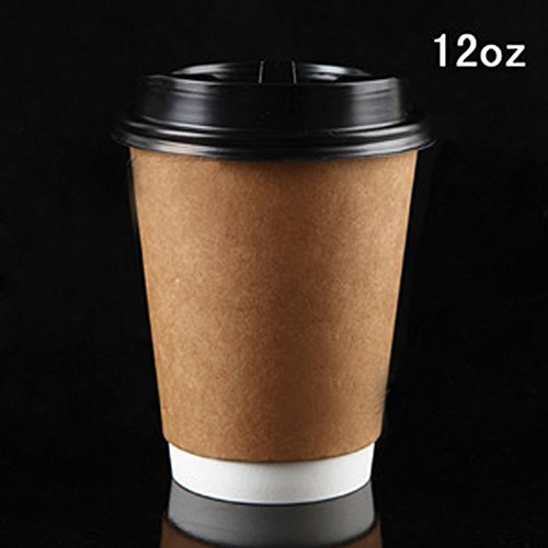 HOMMP Disposable Hot Coffee Paper Cups with Lids and Cup Sleeves,100count/box(12 oz)
