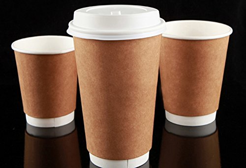 HOMMP Disposable Hot Coffee Paper Cups with Lids and Cup Sleeves,100count/box(16 oz)