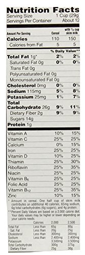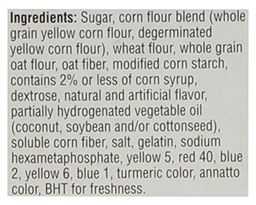 -. Feature : One pack of four, 12.6-ounce boxes of Kellogg's Froot Loops Marshmallow cereal / Approximately twelve 1-cup (29-gram) servings per box; 48 servings total / 3-grams of fiber per 110-calorie serving; 11 essential vitamins; 0 trans fat / Colorful multi-grain rings of whole corn flour, wheat flour, and whole grain oat flour / Fun, fruit-flavored marshmallow bits--vitamin fortified