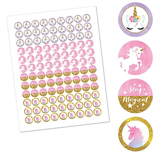 Rainbow Unicorn - Magical Unicorn Baby Shower or Birthday Party Round Candy Sticker Favors - Labels Fit Hershey’s Kisses (1 sheet of 108)