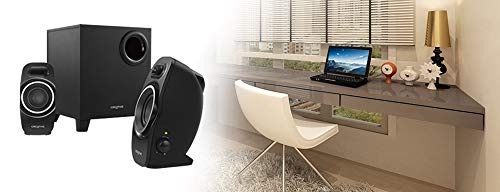Creative SBS A250はコンパクトなサイズながら重低音の効いたパワフル サウンドを再生するアナログ接続タイプの2.1チャンネル スピーカー システムであり、パソコンのみならず、スマートフォンやタブレット、携帯音楽プレーヤー、アナログ出力のあるテレビ等と接続して、ゲームやムービー、音楽を、パワフルなステレオ サウンドで手軽にお楽しみ頂けます。