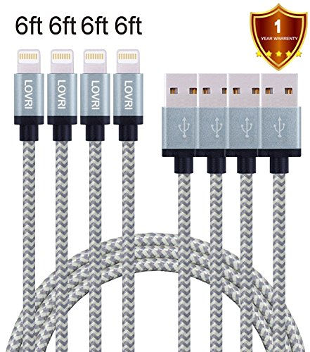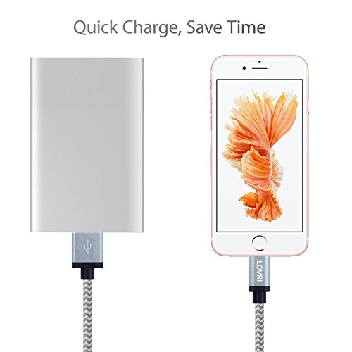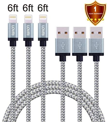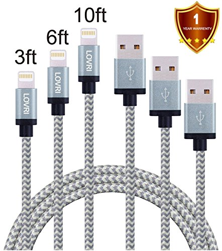 LOVRI 3 Pack 3FT 6FT 10FT Durable USB Cord Tangle Free Nylon Braided 8 Pin Charging and Sync Lightning Cable for iPhone 6/6s/6 plus/6s plus, 5c/5s/5, iPad Air/Mini,iPod . (Gray)