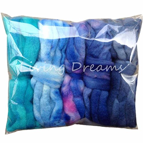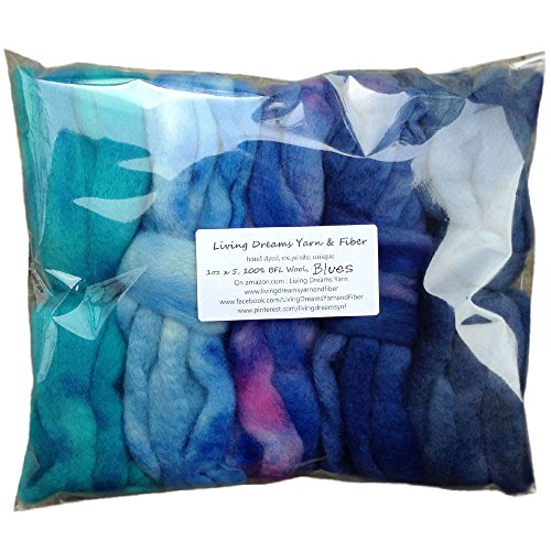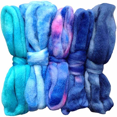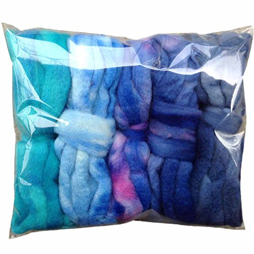 SPINNING FIBER Super soft BFL Wool Top Roving drafted for hand spinning with drop spindle or wheel, felting, blending and weaving. Variegated hand dyed mini skeins. 5 Ounce DISCOUNT PACK, Blues