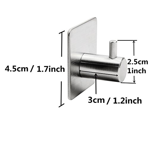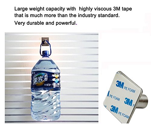 - All the hanger is constructed of polished stainless steel, while the hook backing is made with strong 3M self adhesive which can provide extra strength and durability. Every hook(Size: 45mm x 45mm height: 26mm) is 3Oz but it can hold up to 4.5 pounds (about 2 kg), which maybe the best strongest adhesive hanger on the market.