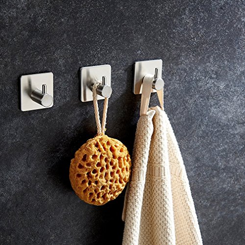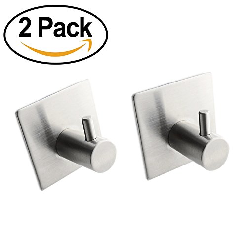 18/10 Stainless Steel VLV Heavy Duty Solid Glue No Scratch No Drilling Self-stick Adhesive Hook ,Waterproof Bathroom Kitchen Hanger (2 Pcs)