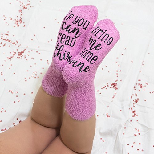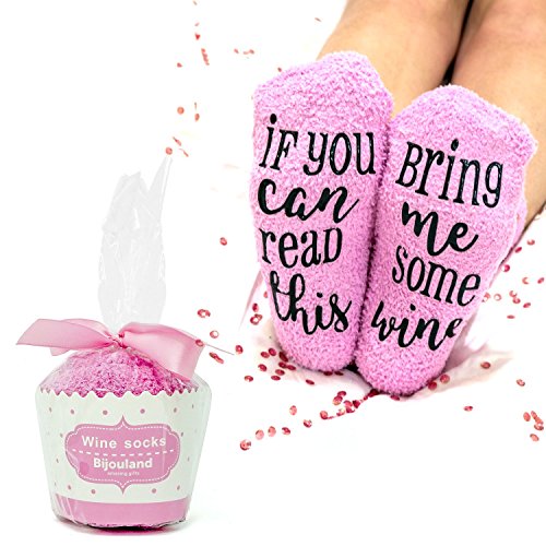 -. Title : BijouLand - If You Can Read This Bring Me Some Wine, Fuzzy Wine Socks For Women, Wine Lovers gift with Cupcake Package