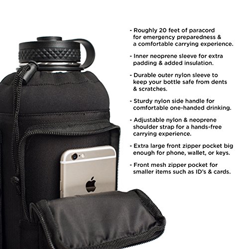 COMFORTABLE CARRYING: 3 convenient and secure ways to carry your bottle. Adjustable shoulder strap to carry hands-free, side nylon handle for easy one-handed drinking, and detachable paracord handle for a comfortable carrying experience. Never leave your growler at home again.