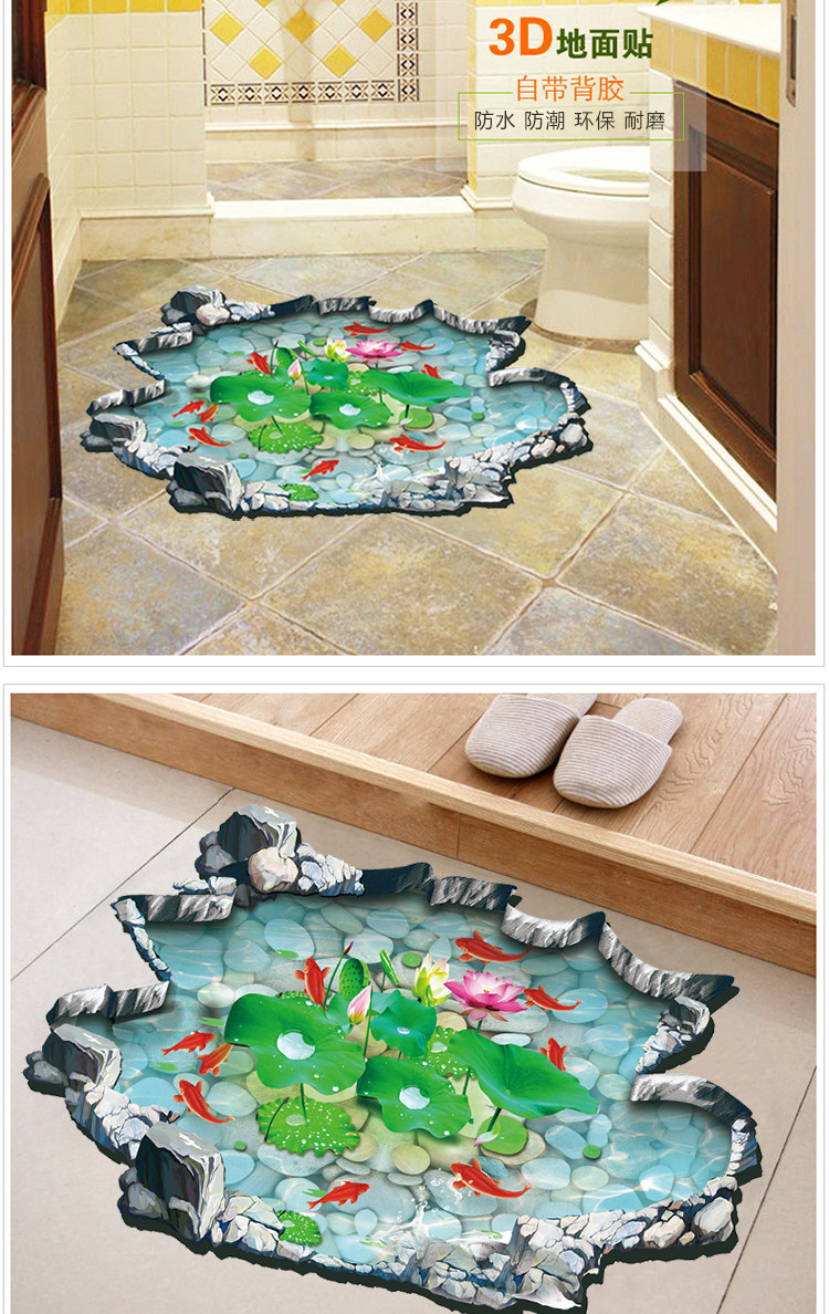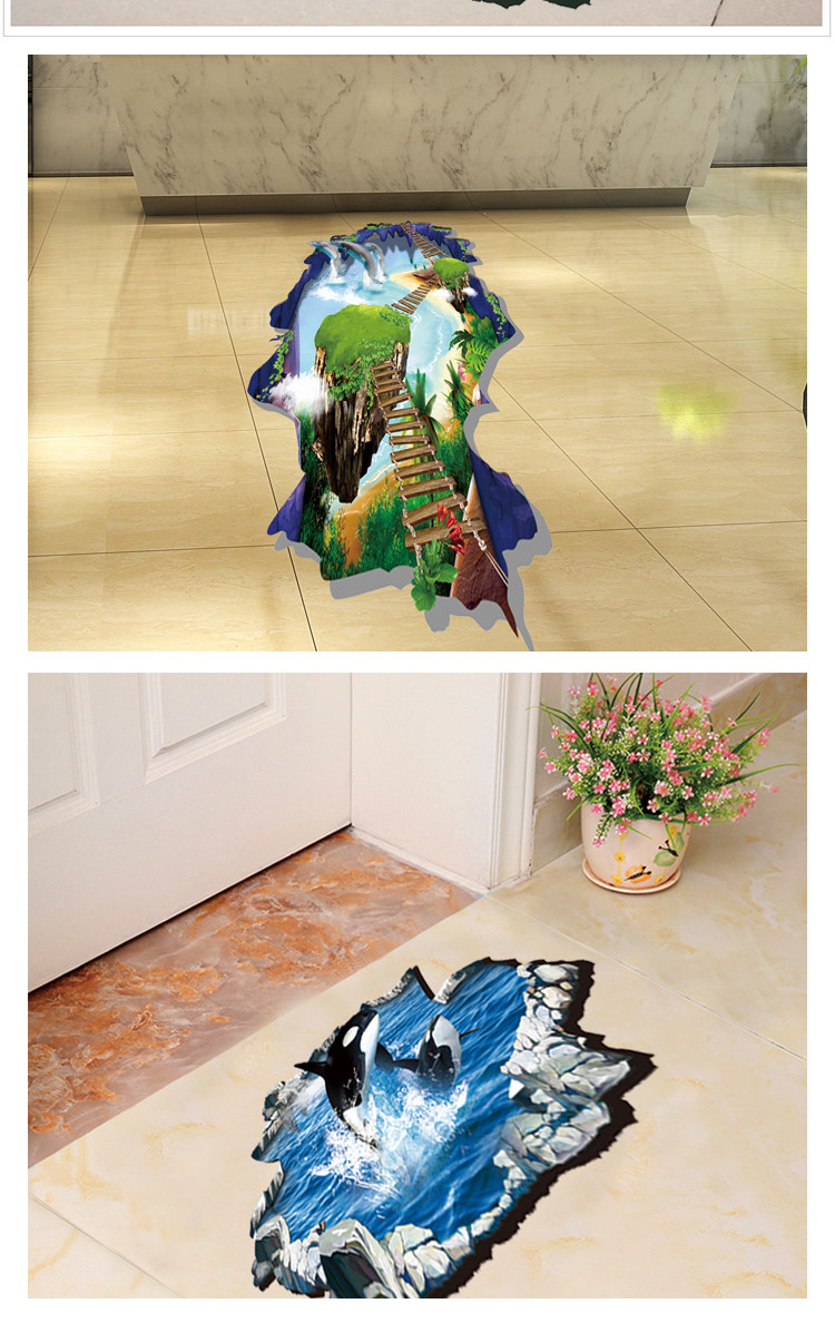 3D立体画墙贴防水耐磨地贴儿童房卫生间浴室地板创意瓷砖地砖贴纸