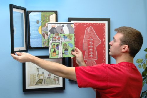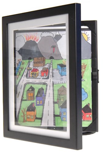Child artwork frames from Lil Davinci allow you to continually update your wall art by adding new masterpieces to display and showcase. Tastefully showcase your children's masterpieces with the Lil DaVinci Store & Display Art Cabinet. A discreet hinge allows you to open the front of the L'il DaVinci Art Frame and easily swap out pictures or artwork. The spring-loaded corners make it possible to hold 1 to 50 pages so you can archive all of your children's creativity. Each frame is made from wood with a black matte finish. The 8.5 inch by 11 inch picture frame can be latched closed to prevent unwanted tampering. Reduce refrigerator clutter, encourage your child's artistic talent, and transform their art into framed masterpieces with the Lil DaVinci Store and Display Art Frame. The art frame can be hung vertically or horizontally (mounting hardware is included).Feature