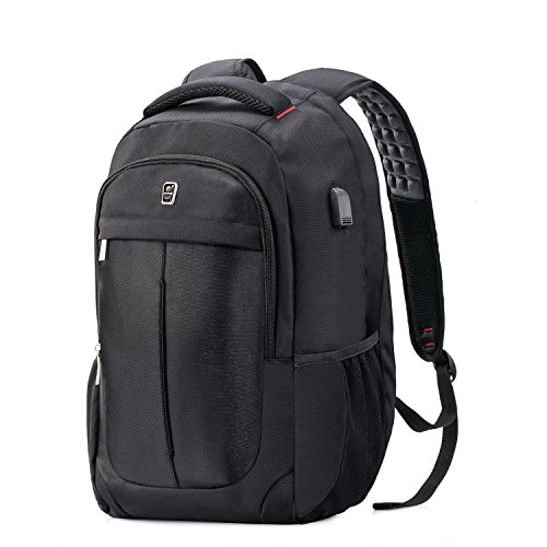 Laptop Backpack, Sosoon Business Anti-Theft Water Resistant Polyester Laptop Backpack with USB Charging Port Fits Up to 17-Inch Laptop and Notebook, Black