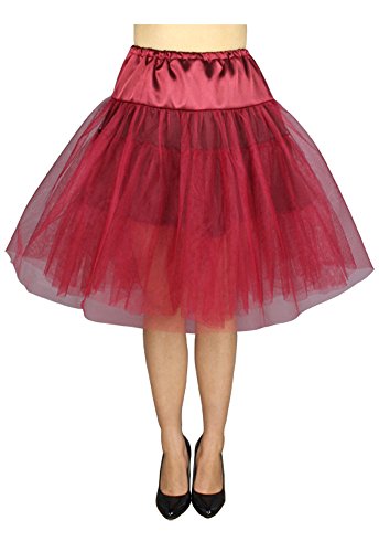 -. Binding : Textilien -. Brand : Chic Star -. Feature : Länge: 65cm / Schöner Petticoat Rock, der durch seine drei Lagen Tüll ein tolles Volumen hat. Durch bügeln auf der kleinsten Stufe wird er noch voluminöser. / Der breite Bund an der Hüfte ist aus Satin und außerdem noch einen eingearbeiteten Unterrock. / Dieses nostalgische Stück passt zum Beispiel herrlich zu unseren Rockabilly-Kleidern, kann aber auch alleine getragen werden. / Der Rock ist Einheitsgröße mit elastischem Gummibund und seitlicher Bindung. -. MPN : C379501 -. PartNumber : C379501 -. ProductGroup : Apparel -. ProductTypeName : DRESS -. Title : 50er Jahre Rockabilly Petticoat Rock aus Tüll C379501