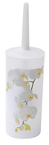 - Lovely printed toilet brush purity with White and yellow Orchids which easily stows away in an elegant container