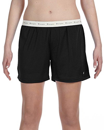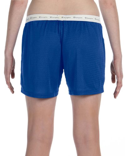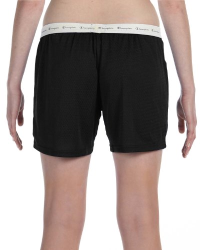 Product Description100% polyester mesh body; 100% polyester tricot lining; Champion printed logo roll waistband; tag-free; 5" inseam; "C" logo at left hem;0