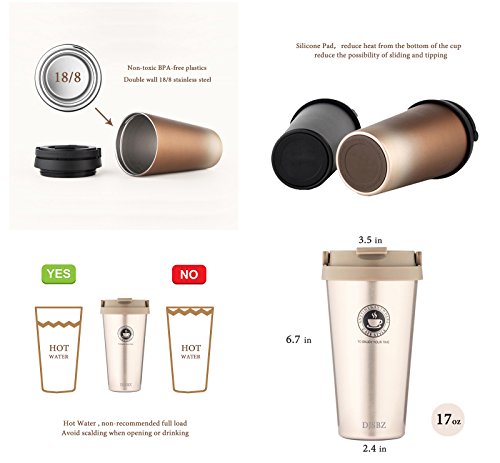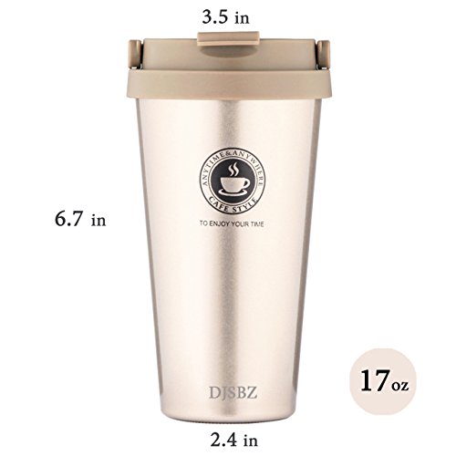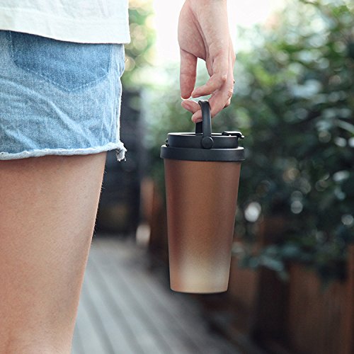 17 Ounce Vacuum insulation Coffee Bottle Cup Double Wall 18/8 Stainless Steel 304 Metal Tumbler with Spill Proof Lid and Handle Silicon Rubber Antiskid Super Thermal Insulation