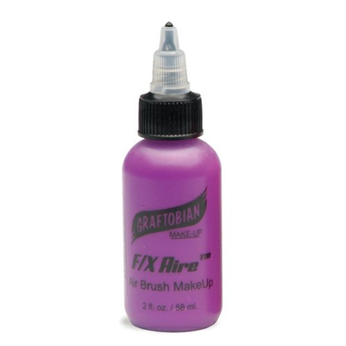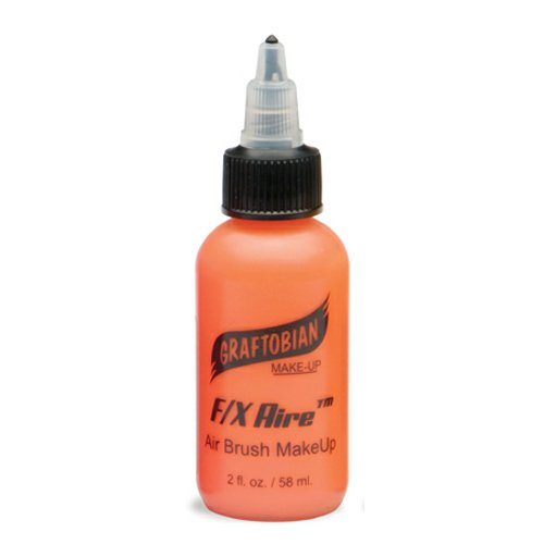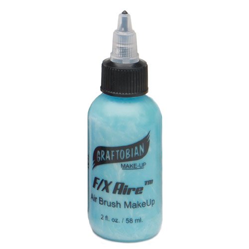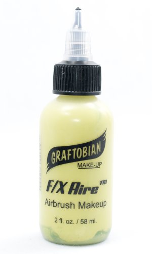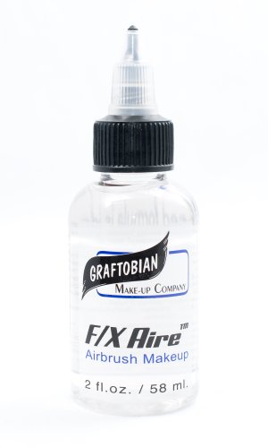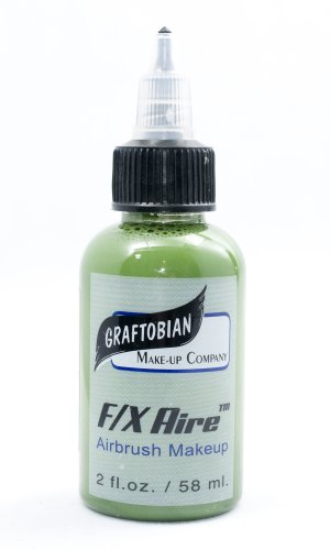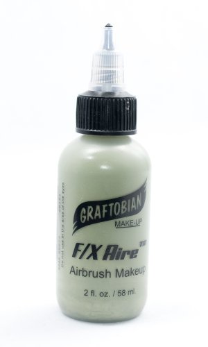 Graftobian's F/X AireTM black HD Airbrush makeup is alcohol based, smooth and trouble free. Graftobian Airbrush makeup goes on quick and easy with excellent coverage that will last 12-14 hours. Because Graftobian uses much smaller particles, and a more durable alcohol soluble copolymer, than other brands you have no clogging with better adhesion to the skin, so your work will stay looking amazing for the whole day! Your airbrush creations will look great for the whole day, even if they get wet or come in contact with sweat. F/X Aire HD Airbrush makeup washes off easily with warm soap, water and a little scrubbing. F/X Aire does not need thinning with water or alcohol; it's already the perfect consistency for airbrushing. Note that thinning the makeup can cause clumping or clogging. 2oz bottle/Green.Feature