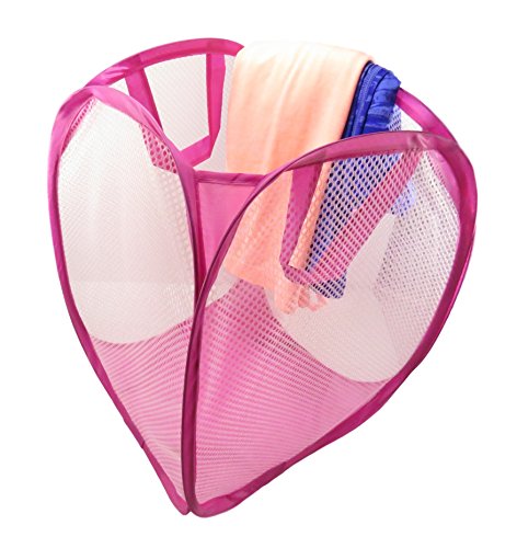 Foldable Pop-Up Mesh Laundry Hamper Storage Bag Basket Clothes Toys Books 16 x 12 Neon Pink