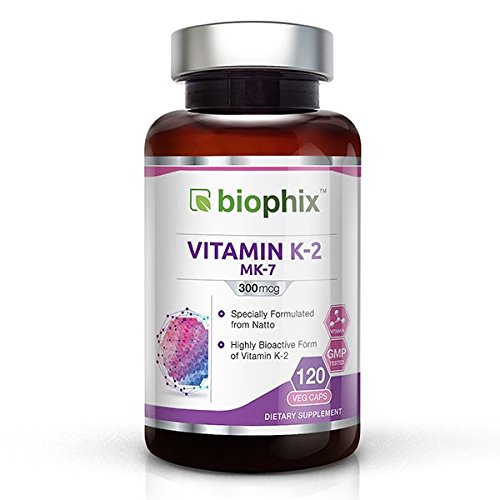 -. Binding : Health and Beauty -. Brand : biophix -. EAN : 0849440003369 -. Feature : Supports Bone Health / 300 mcg / Natural source from Natto / Promotes Arterial Health -. Label : Biophix -. LegalDisclaimer : This information is intended for your general knowledge only and is not substitute for professional medical advice or treatment for specific medical conditions. This information is not intended to diagnose, treat, cure or prevent any disease. Always seek the advice of your qualified physician or other health care provider with any questions you may have regarding a medical condition. Keep out of reach of children. -. Manufacturer : Biophix -. MPN : 0849440003369 -. NumberOfItems : 1 -. PackageQuantity : 1 -. PartNumber : 0849440003369 -. ProductGroup : Health and Beauty -. ProductTypeName : HEALTH_PERSONAL_CARE -. Publisher : Biophix -. Studio : Biophix -. Title : Biophix MK-7 Vitamin K2 - 300 mcg 120 Vcaps -. UPC : 849440003369