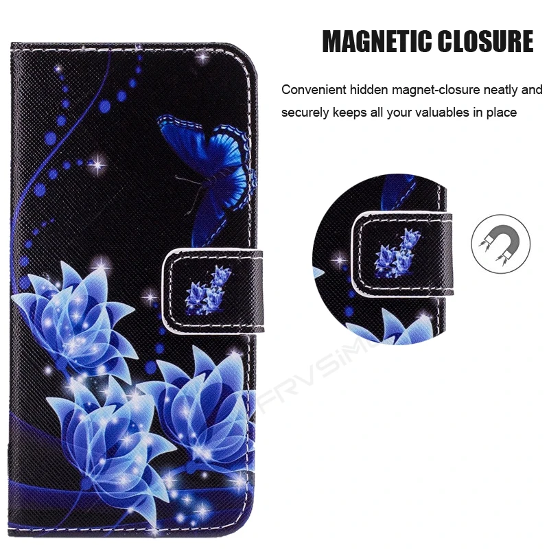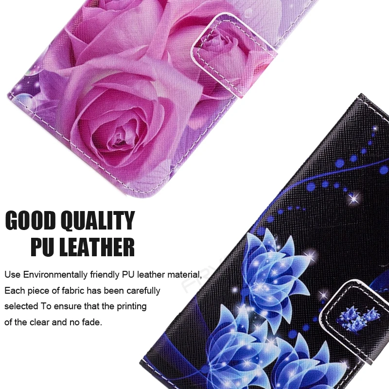 タワーローズ印刷フロントバックルフリップスタンドレザーケース