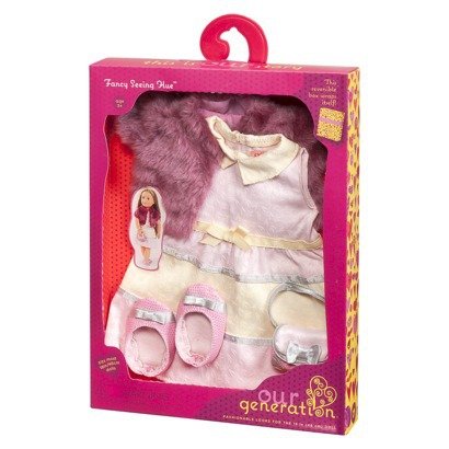 Studio : Maison Joseph Battat, Ltd. Publisher : Maison Joseph Battat, Ltd. Binding : Toy Product Description Dress your Our Generation doll for any occasion with this Our Generation Deluxe Jacquard Dress Outfit. The complete ensemble comes with a sleeveless dress for warm days, a fuzzy faux fur jacket for cold days, a stylish purse and matching shoes. These doll clothes are a wardrobe staple and offer hours of fun no matter what adventures your daughter and her doll are getting into.