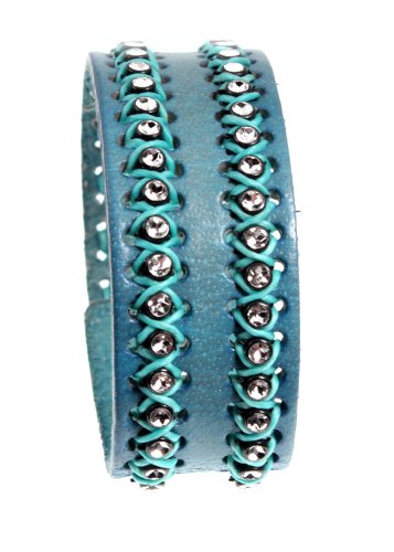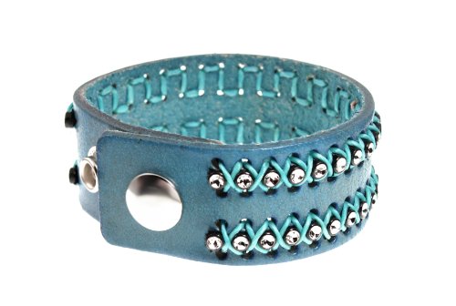 -. Feature : Quality Blue Genuine Leather Bracelet / Handsewn Leather Has Sparkle Accents and Snap Closure / Great looking Wristband Fits 7 to 7.5 Inches