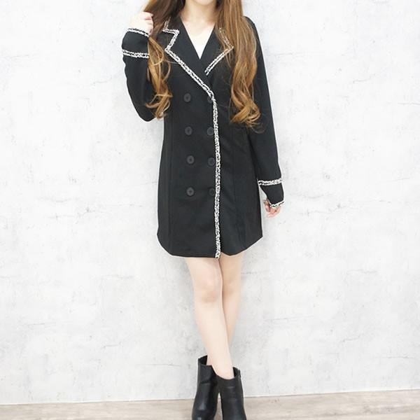 ダブルボタンのミニワンピースです。 ツイードパイピングが可愛い。 身長の高い方はロング丈ジャケットとしても着用いただけます。 バブリーダンスにも。 Mサイズ 丈:75cm 肩幅:36cm バスト:42cm 袖丈:57.5cm Lサイズ 丈:78cm 肩幅:37.5cm バスト:46cm 袖丈:58cm (平置き採寸) ストレッチ:あり 透け感:なし 裏地:なし モデルサイズ 身長 153cm MADE IN CHINA |