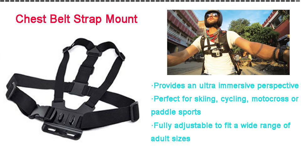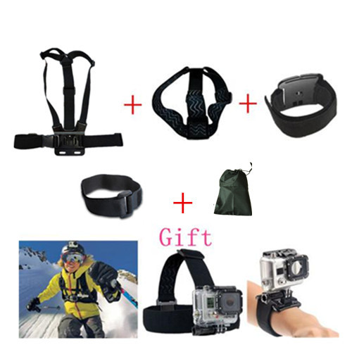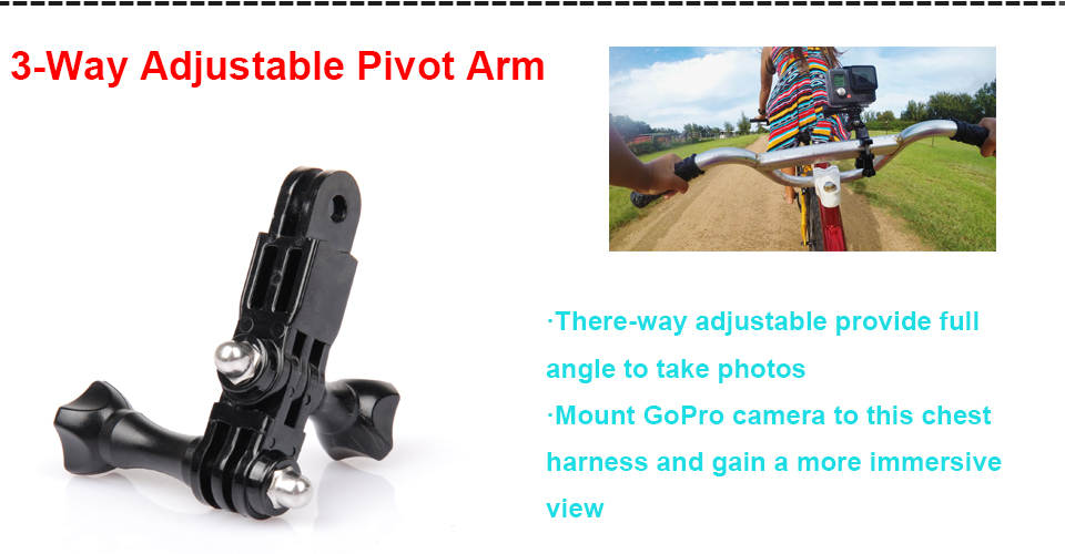 (5 in 1-2) GoPro Accessory Combo Kit--Chest Strap+J-Hook+Head Strap+Bike Mount(With three-way adjustable arm)+Suction Cup Camera isn't included