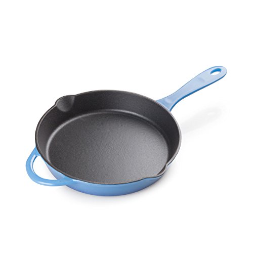 -. Title : FortheChef 10" Enamel Cast Iron Round Skillet, Blue, with Long Handle