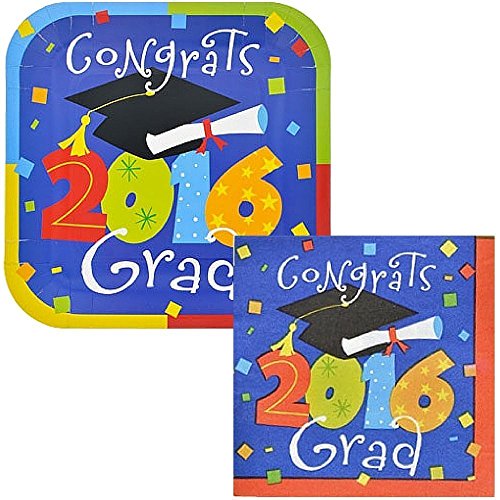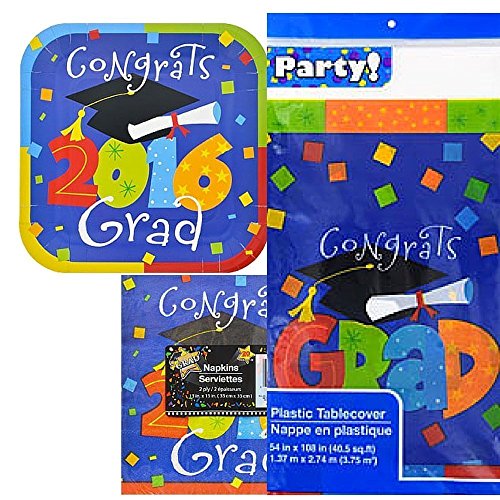 Graduation Party Kit 2016 Plates, Napkins,Tablecloth Graduation Supplies Gr-01