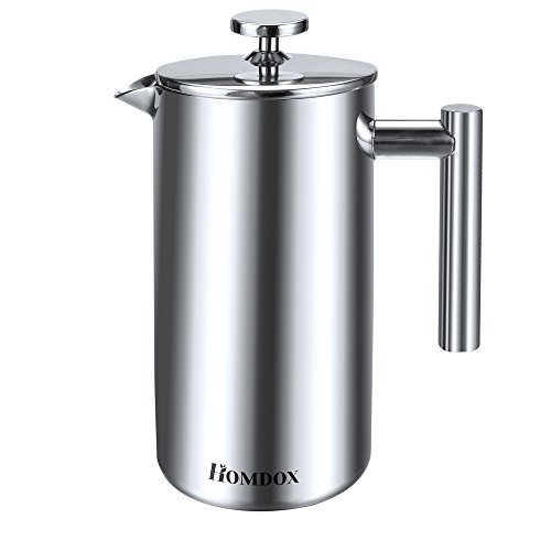 -. Feature : ✔ This Homdox French Press Brews 1 liter (8 coffee cups or about 4 coffee mugs), 34oz. of the best tasting coffee. The best stainless steel(18/10)interior and exterior--Won't rust and dishwasher safe. / ✔ Double-wall construction. Keeps coffee or tea warm longer and outside stays cool to the touch. / ✔ With flowing line, auspicious sign, decent and classical design, the result is a modern classic, sure to another 20 years of changing design trends and fashions. Mirror finish with Stylish design, look attractive in Kitchen and office. Great Wedding, House warming, retirement and birthday gifts for ALL Coffee lovers. / ✔ The French Press can be used as a Coffee or Tea Press Pot and is the best way to prepare coffee, tea, iced tea, frothed milk, hot chocolate, fruit infusions, almond milk, cashew milk, plant tinctures, lemonades, rinse quinoa and more. / ✔ Lifetime Guarantee. Buy with absolute confidence thanks to our 100% money back lifetime guarantee. 2 Pieces Bonus Stainless Steel Screens(Over $25 Value)---FREE!
