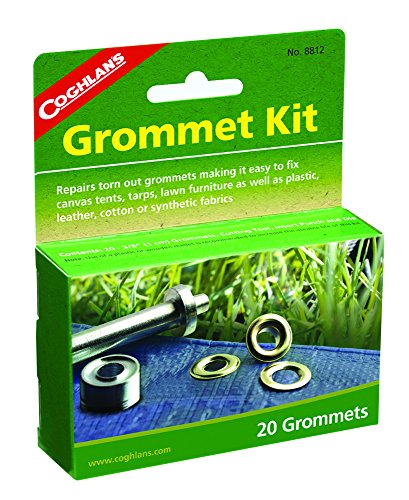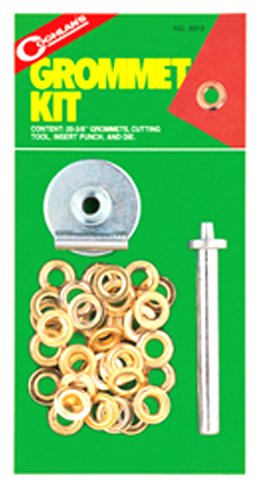 Brass-plated grommets For canvas, plastic, leather, cotton or synthetic fabrics Kit contains 20 - 3/8 in. grommets, cutting tool, insert punch and setting die Item model num : 8812