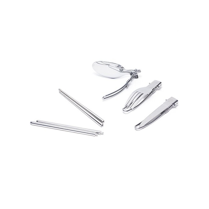 MAGNA(머그나) 절첩식 싱글 커트러리 메쉬 타입 수납대 포크 스푼 나이프 연결 젓가락 카라비너 6점 세트
