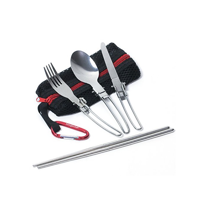 원본상품명: MAGNA(マグナ) 折式 シングル カトラリ メッシュタイプ 納袋 フォク スプン ナイフ つなぎ箸 カラビナ 6点セット