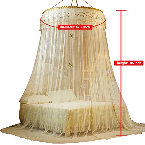 SINOTOP Round mosquito nets Luxury Princess Pastoral Lace Bed Canopy Net Crib Luminous butterfly (yellow)