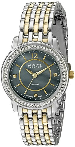 August Steiner Women's AS8027TTGB Diamond & Crystal Accented Gray Mother of Pearl Two Tone Bracelet Watch