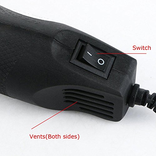 - Dimension: 240*50mm / 9.44*1.97in. Voltage:110V. The left and right sides have a heat sink, the internal temperature of the hot air gun is reduced, and the service life is prolonged.