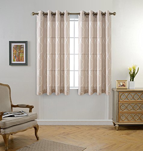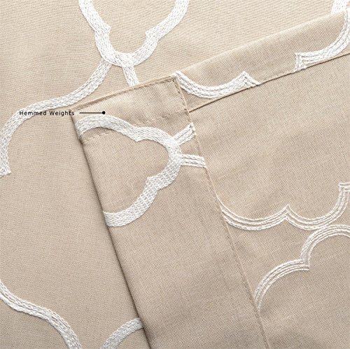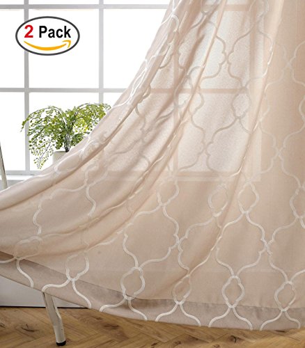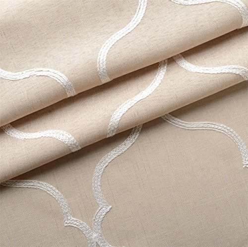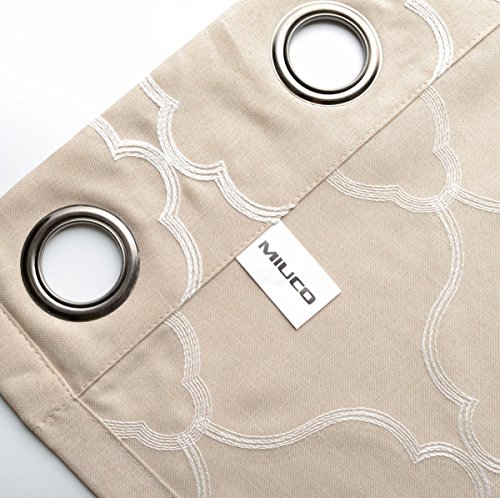 Miuco Moroccan Embroidery Semi Sheer Curtains Faux Linen Grommet Window Curtains for Bedroom 52 x 63 Inch 2 Panels, Linen