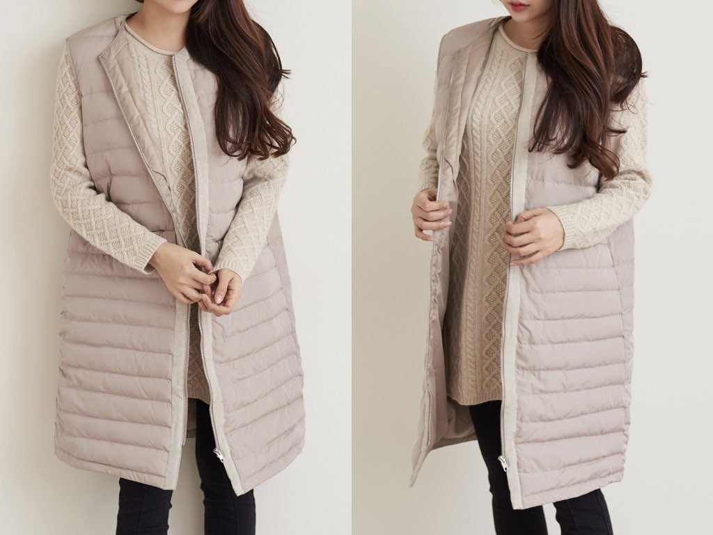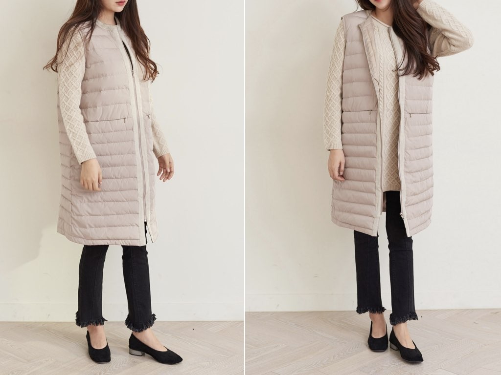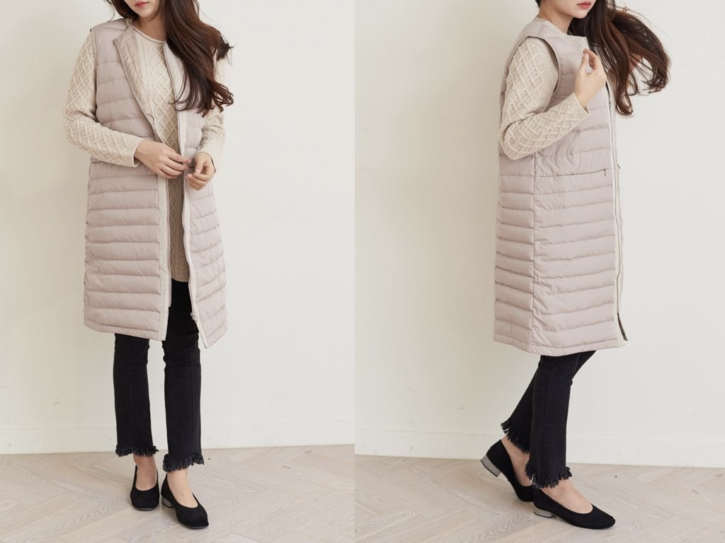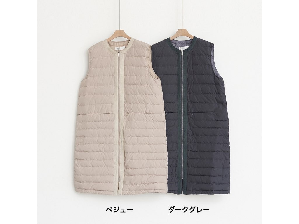 トップスにもインナーにも最適なおでかけ用のロング丈のダウンベストです。軽量ながら暖かく防寒対策として最適です。1.基本情報色:2色展開(ベージュ/ダークグレー)サイズ:Free素材:-製造国:korea2.サイズ情報肩幅:39cm 身幅(胸断面):53cm アームホール:23cm 着丈(前):91cm(サイズは計る方法に応じて±2〜3cmの誤差があります。ご了承お願い致します)モデル着用サイズ:F※着用モデル(163cm、体重47kg、足のサイズ24.5cm)3.その他の情報厚み:中間透け感:なし伸縮性:なし裏地:あり洗濯方法:ドライ(クリーニング)[注意事項]お取り寄せ商品は、海外より仕入れるため納品まで約10日前後いただきます。また店舗でも販売しており、在庫切れになる場合もございます。ご了承お願い致します。