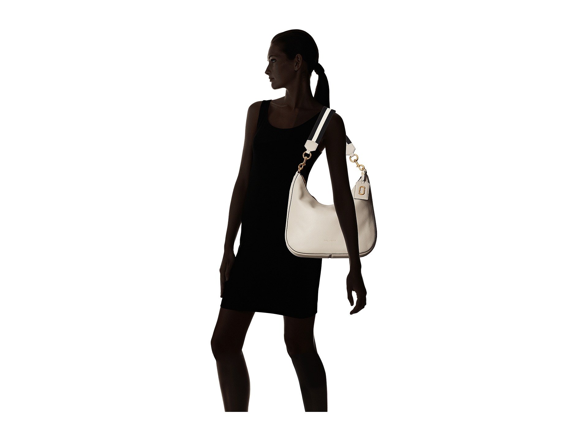 | Product Information SKU: #8719753Keep your style updated with the Marc Jacobs? Gotham Hobo. Hobo bag made of leather. Top zip closure. Removable shoulder strap. Brand name hardware at front. Flat base to provide upright structure. Lined interior features back-wall zip pocket and front-wall slip pocket. Imported. This item may ship with an attached security tag. Merchandise returned without the original security tag attached or a damaged tag may not qualify for a refund.This product may have a manufacturer's warranty. Please visit the manufacturer's website or contact us at warranty@support.zappos.com for full manufacturer warranty details.Measurements: Bottom Width: 14 1?2 in Depth: 3 1?4 in Height: 11 1?2 in Strap Length: 26 in Strap Drop: 14 in Weight: 2 lbs 2.8 oz |