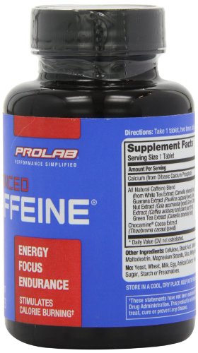Studio : ProLab Publisher : ProLab Binding : Health and Beauty Product Description Prolab Advanced Caffeine is a proprietary blend of natural caffeine sources including the hot new Green Coffee Extract, White and Green Tea Extracts, Chocamine, Kola Nut Extract and Guarana Extract. Advanced Caffeine helps stimulate a surge of adrenaline, dials you in with intense mental focus, and boosts energy levels to ignite your workouts. Advanced Caffeine helps keep you switched on by enhancing performance, strengthening endurance and stamina, and delaying the onset of muscle fatigue to power you through the toughest workouts 0