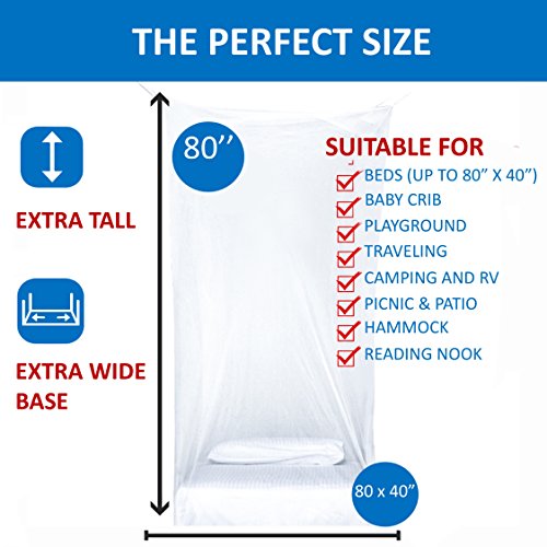 GIVE YOUR BEDROOM AN AFFORDABLE MAKEOVER: Bored with your bedroom? This Mosquito Net gives an instant touch of elegance and romance to the decor. It has the IDEAL SIZE (H80” x L80” x W40”). Perfect as tent over a baby bed, twin bed or any size in between. This Mosquito Net is BIGGER than most other nets and features an opening for easy entrance. Also a great GIFT. Additionally, when you order this net, a portion of the profits goes to charity.