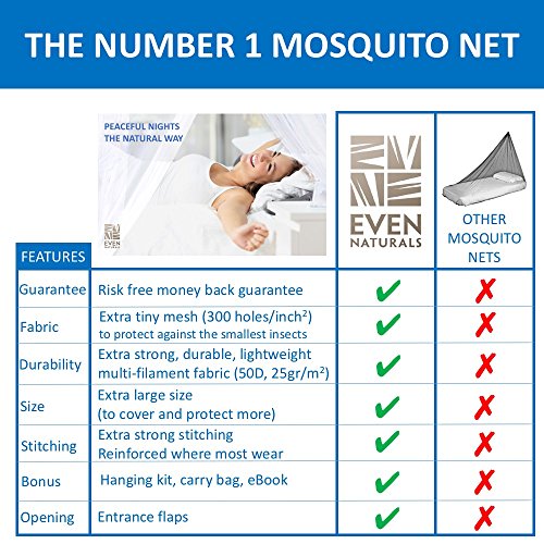 100% MONEY BACK GUARANTEE: Customer satisfaction is our top priority. All EVEN Naturals® products come with a 1 month guarantee: if you experience ANY problems with your Mosquito Net, we refund your entire purchase instantly. Buy now RISK FREE today and experience the EVEN Naturals® difference!