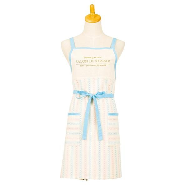 | 2色使いのシンプルなラインと生成り色が女性らしいナチュラルなエプロンです。上下で柄が切り返しになっていて、年代問わず可愛い印象を与えてくれる明るい色合いです。左右に大きなポケットがついていて、とっても便利です♪ |