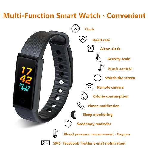 MULTY-FUNCTION SMART BRACELET: Connecting with your phone through Bluetooth, then you can control it and do things like: Heart rate measure, Activity scale, Calories consumed, Blood pressure measurement, Oxygen saturation measurement, Phone notification, Music control Switch the screen Remote camera Sleep monitoring etc.